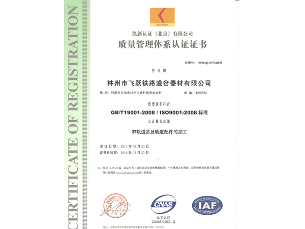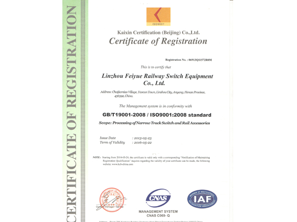 林州市飛躍鐵路道岔器材有限公司位于舉世聞名的世界八大奇跡之一“人工天河”紅旗渠畔,晉、冀、豫三省交界處,交通、通訊便捷。 公司擁有職工和管理人員120多人,高工5名,技術(shù)人員23人。擁有先進(jìn)的鑄造機(jī)加工設(shè)備和完整的質(zhì)量檢測體系,使我公司連續(xù)數(shù)年被評(píng)為“重合同守信用”和“重量管理”先進(jìn)單位。公司生產(chǎn)的主要產(chǎn)品有:輕重軌道岔及各種工具。按種類區(qū)分有:單開道岔、對(duì)稱道岔、三開道岔、渡交組合道岔等。特殊要